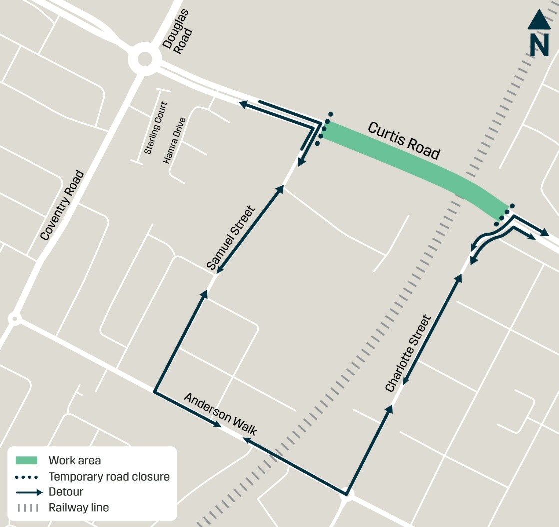 - Changed traffic arrangements will be in place along Curtis Road and surrounding streets until mid-2026