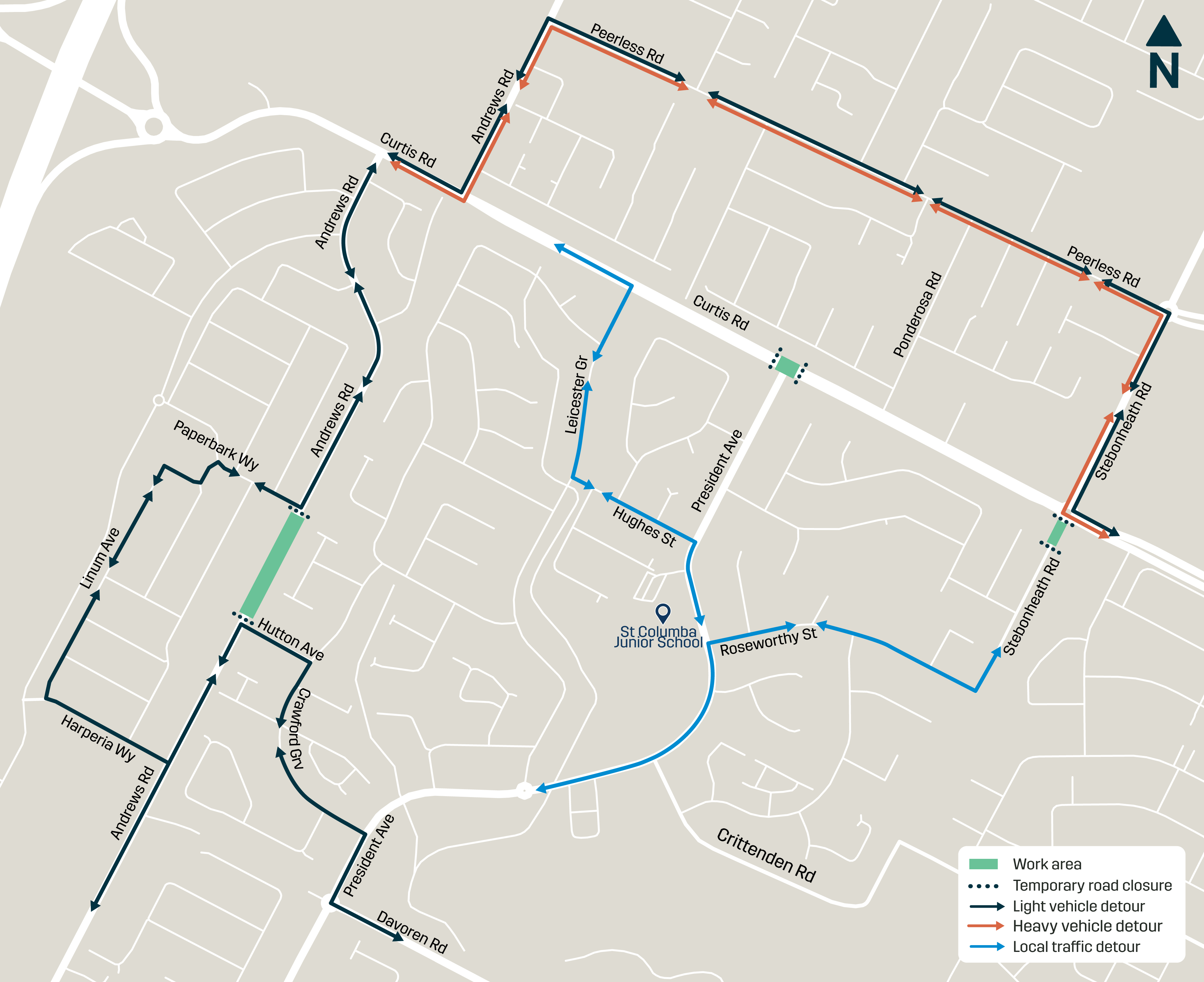- multiple detours will be in place for the duration of the works – please follow all onsite signage