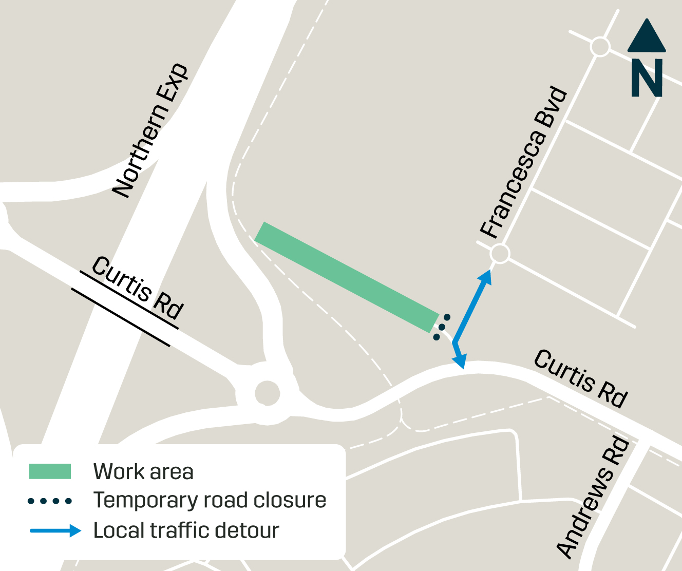 - changed traffic arrangements will be in place along Curtis Road, Heaslip Road and surrounding streets until late-2026