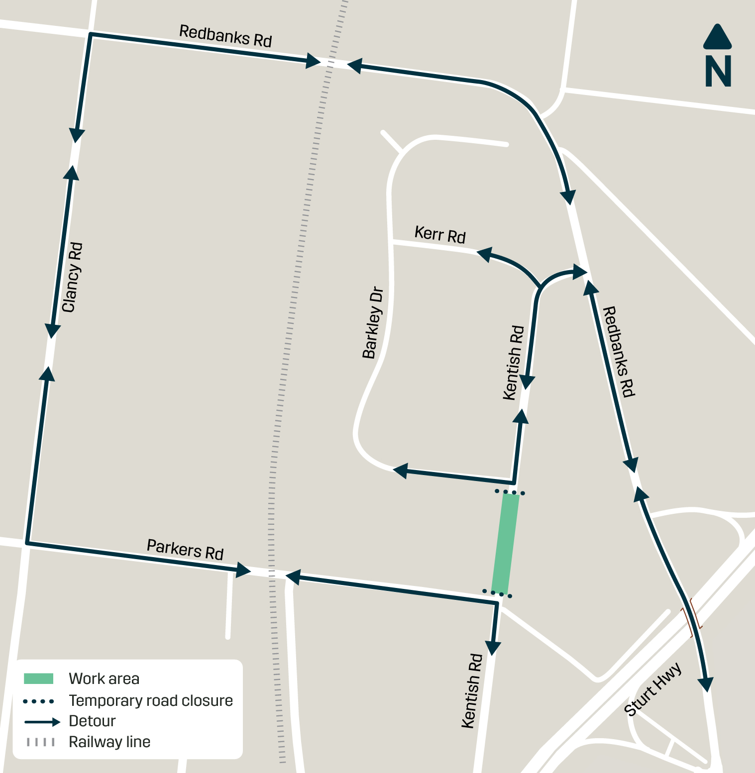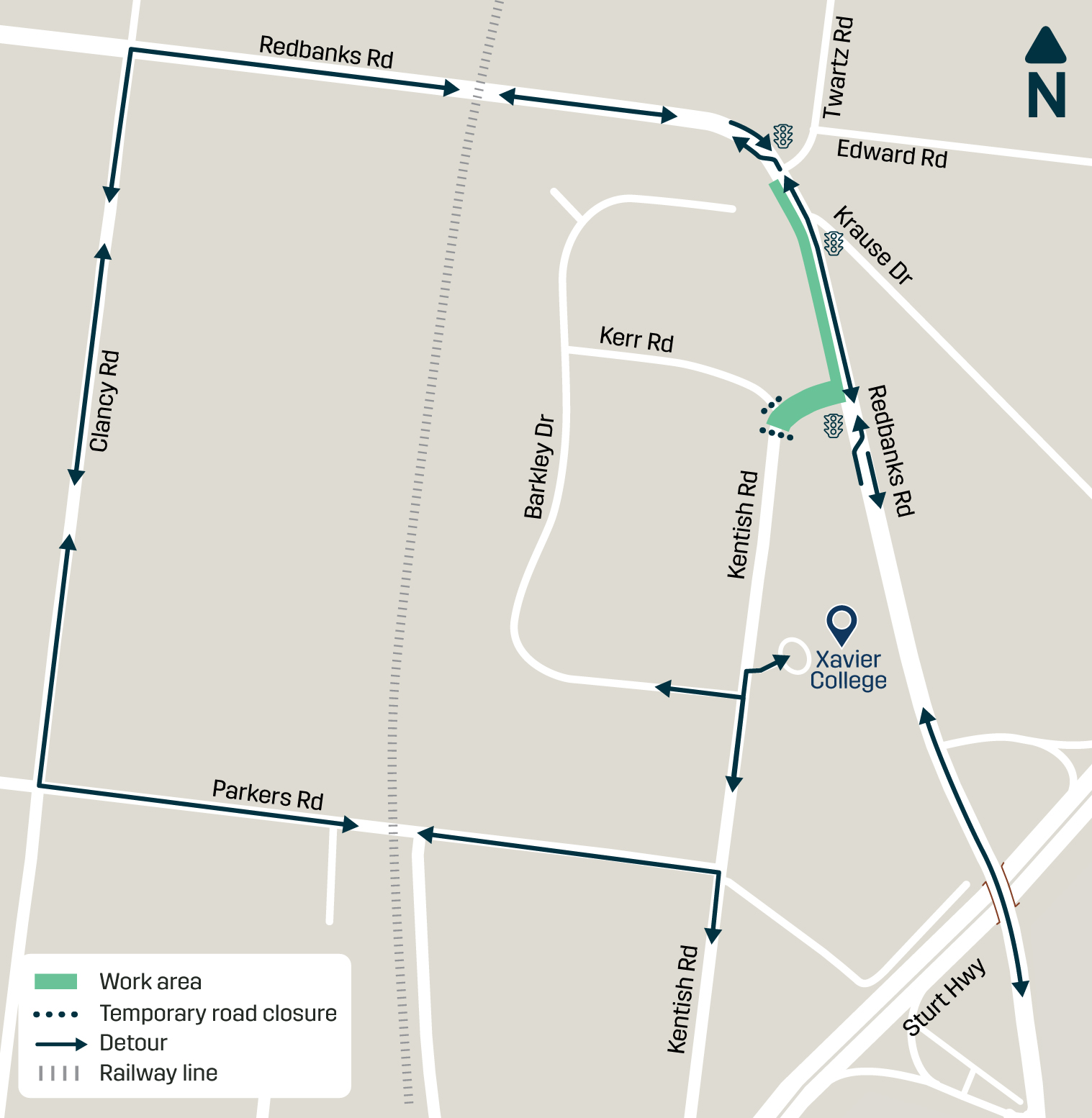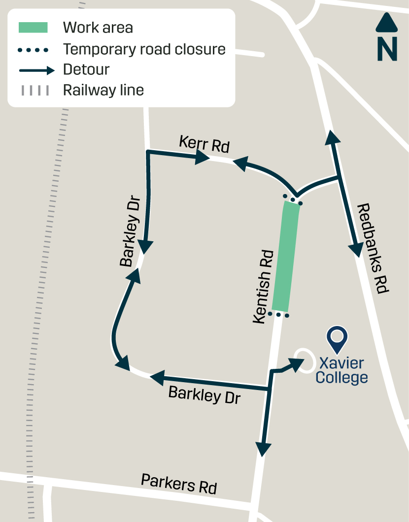 - works will occur on Kentish Road between Parkers Road and Lange Road