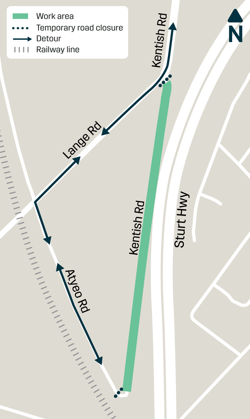- Kentish Road will be closed to traffic between Parkers Road and Barkley Drive for installation of maintenance holes